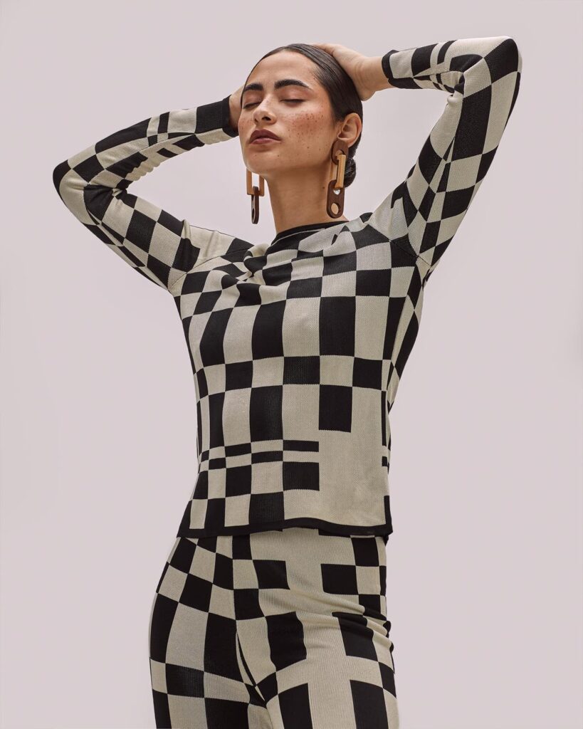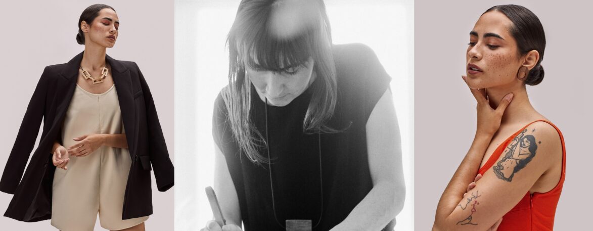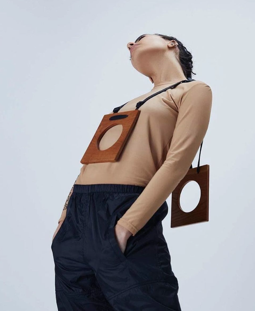 « J’ai une obsession avec les lignes graphiques, j’aime comment les formes peuvent interagir entre elles », confie la designer qui présente entre autres dans sa collection des colliers en bois aux chaînes XL ou des pendentifs en cuir ou en argent sertis de cercle de bois rappelant le cosmos.